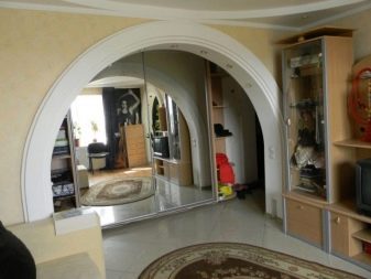 Арките също са украсени с огледала. Ако огледалото е насочено към прозореца, то ще запълни стаята със светлина и ще направи прохода по -просторен. Стъклото често се използва за украса на арки. Освен това обикновено това са блокове, монтирани в цялата височина на вратата и малки стъкла с различна ширина, монтирани по протежение на арката..