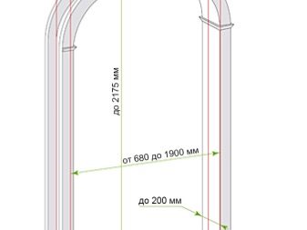 Радиусът на арката трябва да се определя от ширината на вратата. Преди покупката задължително е да се измери височината, ширината на отвора. Също така е важно да използвате индикатор за дълбочина, който отразява дебелината на стените. Освен това дълбочината не трябва да бъде по -голяма от дебелината на сводестата конструкция..