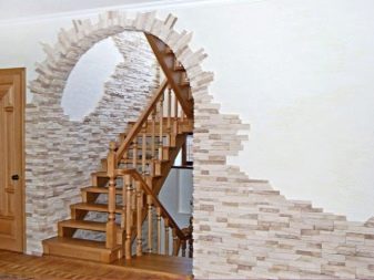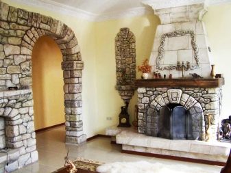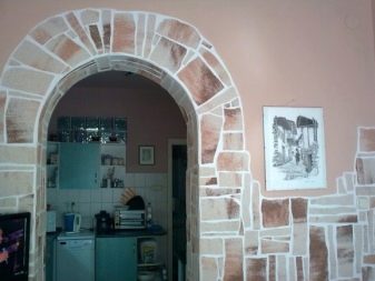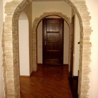 - Камък. Този довършителен материал се използва само ако сводестата конструкция е надеждна. Ако имате празна арка, в този случай по -добре дайте предпочитание на по -лек изкуствен аналог. За създаването му се използва гипс, който е много лек, но не много издръжлив..
