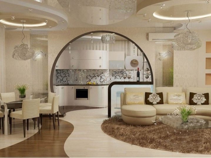 Ако замените вратите с арки, можете да спестите място в стаята и да добавите простор към нея. Освен това по този начин можете да отделите различни функционални области, но в същото време визуално да ги направите по -единни. Арката изглежда много стилна и необичайна; може да изненада всеки гост. Тя може да се отличава с прост неусложнен дизайн или разнообразие от форми. Освен това всички модели могат да бъдат трансформирани с интересен декор..