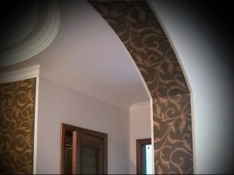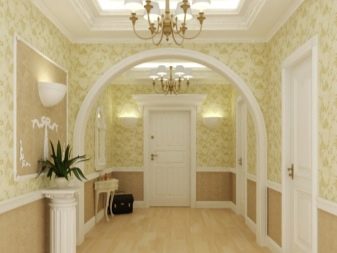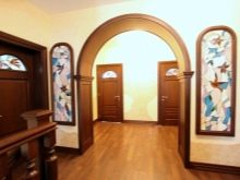 Арката може да бъде залепена с ярки контрастни тапети, като по този начин я подчертава в интериора. За декорация можете да използвате и шарени тапети, чийто цвят ще повтаря цвета на стенните облицовки на съседни помещения. За коридора можете да използвате мозайки или огледала. Такъв дизайн на входа ще привлече вниманието на гостите и ще добави допълнително пространство към тесните коридори..
