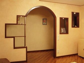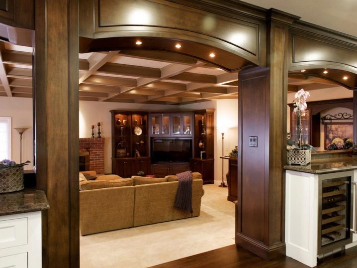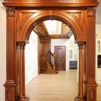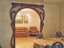 - Дърво. Дървената облицовка обикновено се извършва в стаи в класически стил. Такава арка се отличава с простотата на декора. Много често такива модели са украсени с ажурни дърворезби или върху тях са изрязани изображения на животни, птици или геометрични шарки..