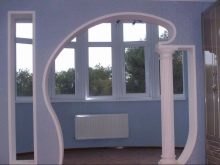 Балконите с арка, водеща към хола, могат да бъдат украсени с големи интересни колони. Това е помпозен и луксозен вариант, който е идеален за декориране на стая в класически стил. Боядисването е много евтин вариант за довършителни работи. В този случай арката първо трябва да бъде измазана и след това покрита с няколко слоя боя. освен това по -добре е цветът на боята да се комбинира с цветовата схема на помещенията, свързани с прохода.