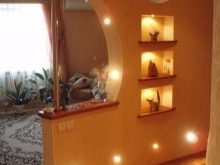 Можете да украсите арката не само с помощта на необичайни довършителни материали, но и по друг начин. Често се използват осветителни тела. Чрез правилно поставяне на светли акценти можете да трансформирате вътрешното пространство и да разширите стаята. В този случай много често се монтират прожектори със светодиоди..