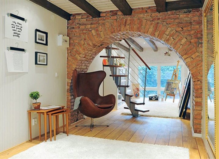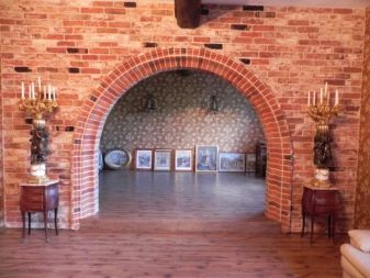 - Тухла. Тухлените арки са доста необичайни, защото изглеждат едновременно прости и стилни. Такова довършване може да се извърши под формата на стенни панели или отделни тухли. Освен това зидарията може да бъде много разнообразна..