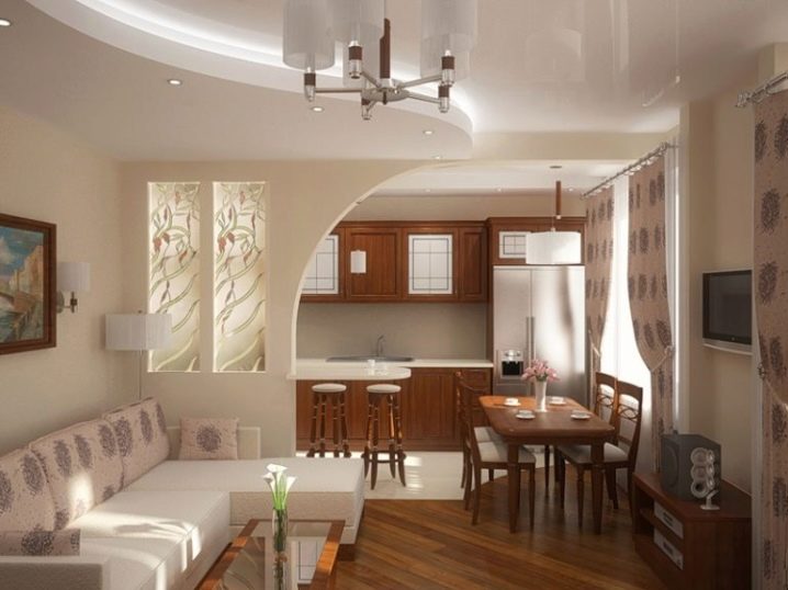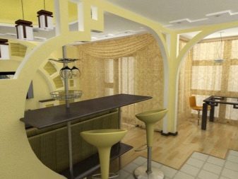 В интериора на апартамента комбинацията от арка и бар брояч е много модерна. Това е стилно решение, което включва разделяне на хола и кухнята. Стелажът ще бъде едновременно обединяващ и разделящ за тези две зони..