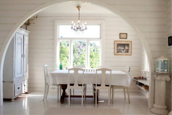 Арката във вътрешността на къщата може да бъде елегантно декорирана в духа на романтизма. В този случай формата му трябва да е леко правоъгълна, но всички ъгли трябва да бъдат изгладени. За тази стилистична посока по -подходящи са широките отвори..