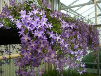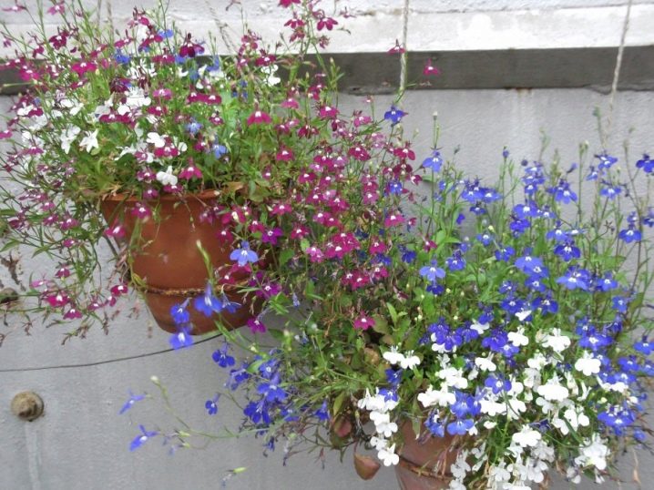 Лобелия. Опитните градинари предпочитат да засаждат Erinus lobelia в страната, но за балконска композиция е по -добре да изберете висяща лобелия. Това е растение с тънки, разклонени стъбла, по време на цъфтежа е напълно покрито с малки цветя с бял, лилав или розов цвят..