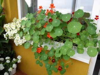Настурция. Широколистно ампелно растение с големи оранжево-червени цветя. Предпочита сенчестата страна. Има над 80 едногодишни и двугодишни видове.