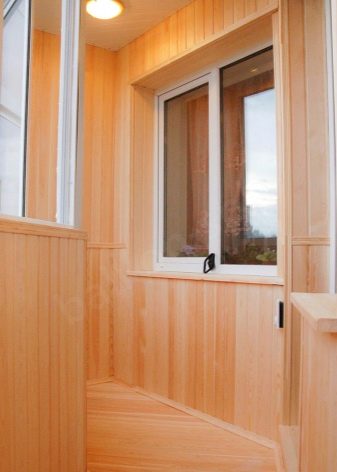 В продажба можете да намерите подплата с различни размери, но като се вземе предвид мястото (не облицоваме вътрешната стая), е по -добре да използвате средни параметри. Дебелината на дървения материал варира до 25 мм, за покриване на балкона трябва да вземете 14-16 мм, при относително топъл климат – 12 мм.