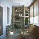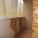 Както естественият, така и декоративният камък се използват като основен материал за довършителни работи.. Огромната популярност на този дизайн се дължи на неговата висока влагоустойчивост, устойчивост на удар и пожарна безопасност. В допълнение, изкуственият камък ви позволява да създадете необичайна атмосфера на топлина и комфорт. Декорирането на балкон с камък се счита за икономически изгодно, поради високото качество на материала, той може да работи дълго време без допълнителни разходи за възстановяване на първоначалния му вид.