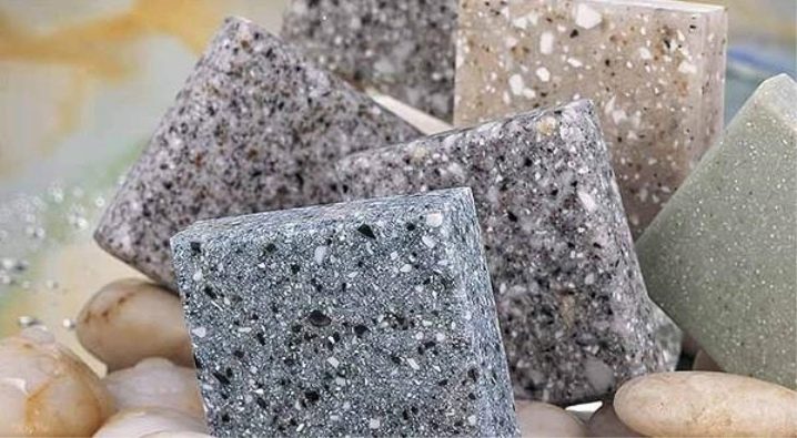 - Конгломерат се отнася до не по -малко издръжливи видове декоративни камъни и са суровини, състоящи се от кварцов пясък, варовик, мрамор и оцветяващи елементи. Основната характеристика на този материал се счита за висока устойчивост на температурни крайности, здравина и дълъг експлоатационен живот..