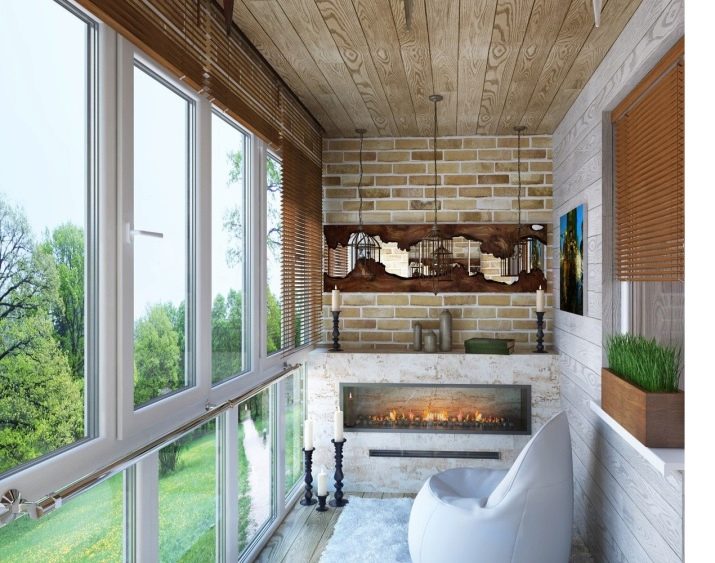 Лофт стил. Тази опция е подходяща за голяма лоджия. Той може визуално да бъде разделен на две функционални зони с помощта на екран. Осветлението в този стил играе огромна роля, така че прозорците трябва да са големи.