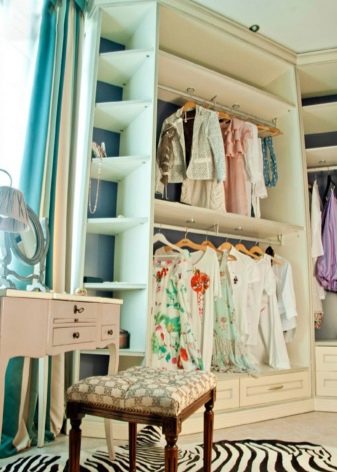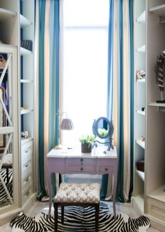 На прозорците е окачен красив тюл, а на тавана е закачен малък полилей. Можете да направите подсветка в основата на шкафа. Ще изглежда стилно и оригинално..