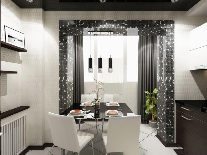 Столова. За 6-метрова кухня идеята за комбиниране на лоджия с кухня може да бъде идеално решение. Гардероби, маса за хранене и столове се преместват в трапезарията, за да се освободи кухненско пространство.
