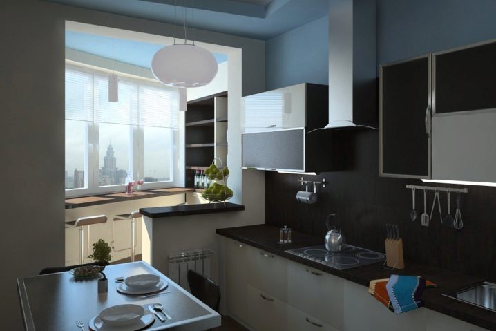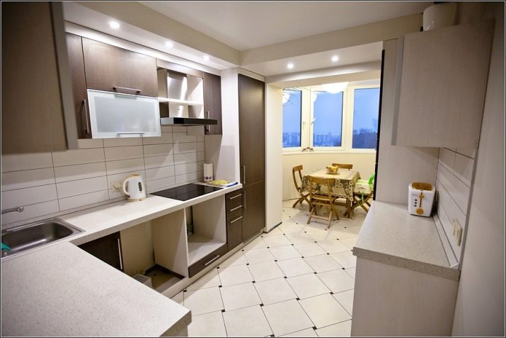 Малка лоджия може да бъде продължение на кухнята. Тази опция е подходяща за апартамент в панелна къща или за собственици на тесни стаи..