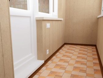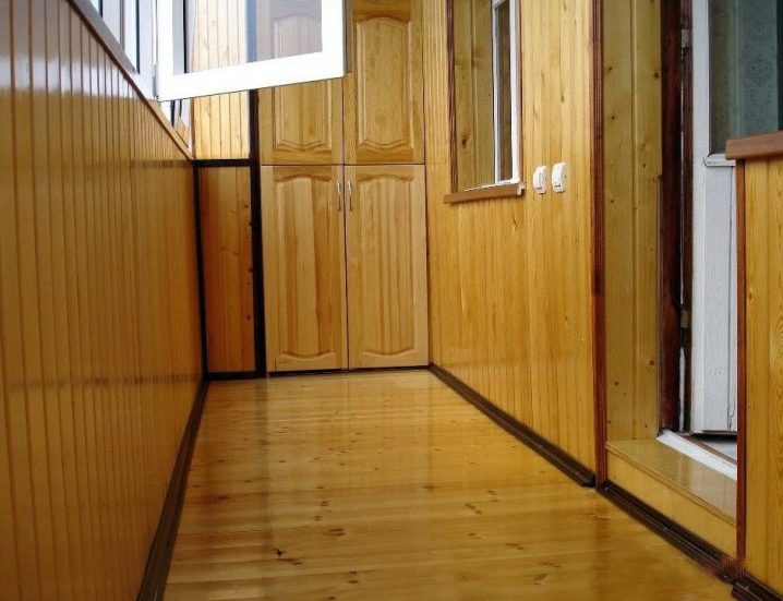 Ако дървесината е с лошо качество, тя трябва да бъде обработена и покрита с линолеум. Поради факта, че дървото е леко, може да се използва за украса не само на лоджия, но и на полу-лоджия.