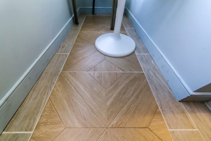 По -добре е да поставите плочките от вратата или от ъгъла, от който можете да видите само всички детайли на финала. С помощта на шпатула разпределете хоросана по вътрешната страна на подовата настилка и задната повърхност на плочката. Разстоянието от една плочка до друга трябва да бъде същото, за да постигнем това, монтираме кръстообразни маяци. Полагаме плочките според нивото на сградата. След приключване на процедурата трябва да скриете шевовете под слой шпакловка..