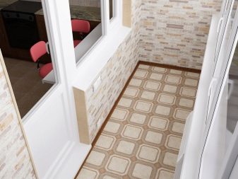 В наши дни можете да закупите това покритие с купчина от всякакво качество, цвят и дължина. За пода на остъклена топла лоджия най -добрият вариант би бил килим от изкуствени материали, положен върху линолеум, паркет или дървен под. За работа се нуждаете от валяк и специален нож, който на външен вид наподобява шевна машина. Има пет техники за полагане на килими, но за пода на лоджията е най -добре да се ограничите до две от тях: