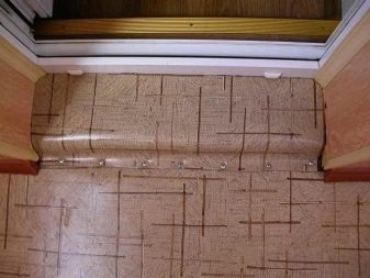 Първо разгънете материала и го разстелете внимателно. По време на монтажа покритието трябва да бъде изравнено, за да се избегнат дефекти и неравности. Фиксирайте линолеума към повърхността с обикновени или течни пирони. След приключване на процеса е необходимо покритието да се фиксира с цокъл с подходящ цвят..