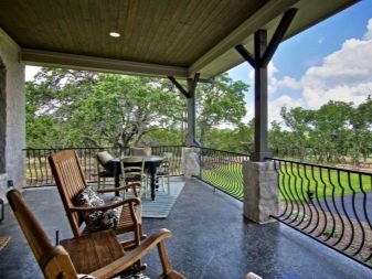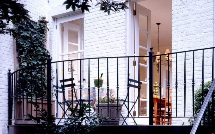 - Втората е кована ограда с основен капацитет не повече от половин метър. В този случай вратите се отварят навътре и бетонната основа се заменя с метална. Тази опция изглежда лека и елегантна. Той е идеален за човек, който обича да излиза на чист въздух с чаша кафе или чай..