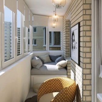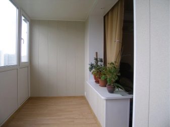 Довършителните работи могат да бъдат вътрешни и външни. Вътрешната част на балкона е пред очите на собствениците на апартамента и техните гости, така че трябва да подходите към този въпрос с интересна дизайнерска идея. Облицовката на помещението ще варира в зависимост от използвания материал и метода на монтаж. Струва си да се отбележи, че на остъклени балкони таванът трябва да бъде обшит със същия материал като стените или с помощта на пластмасови панели. Някои собственици произвеждат облицовки от гипсокартон.