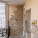 Изкуственият камък се използва активно като декорация в интериорните облицовки. Можете частично да фурнирате една от стените с нея или можете да украсите колона. Интересно изглеждат хаотично подредените декоративни елементи. Компетентната комбинация от изкуствени камъни с растителност ще помогне да се пресъздаде атмосферата на истинска градина..