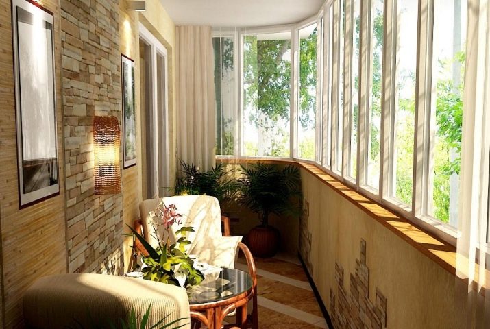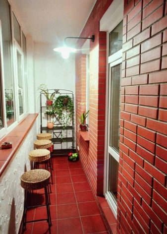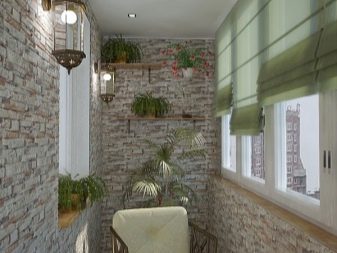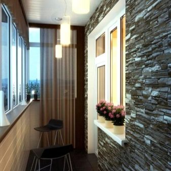 Довършване с изкуствен (декоративен) камък или тухла. Не е тайна, че много хора наистина харесват девствената красота и умишлената грапавост на естествения камък. Но тази опция за облицовка на стени е много скъпа, освен това естественият камък има доста голямо тегло, което затруднява декорирането на стените с него. Отлична алтернатива може да бъде декорацията на стените на лоджията с изкуствен камък. Неговите предимства: