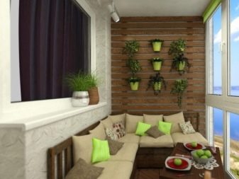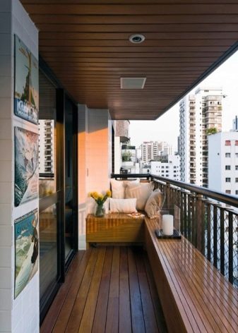 Ако сте късметлия собственик на голяма лоджия – до 6 метра – можете да инсталирате шкафчета, сандъци за прибори върху нея, да закачите куки за инвентар и дрехи. В малка стая няма да се скитате особено, но ако всичко е изчислено правилно, можете да вградите в малък шкаф в ъгъла, да поставите малка пейка или шезлонг, да окачите „лоза“ за сушене на дрехи. За лоджия, оборудвана с пожарно излизане, е много важно да не се затрупва люка с тежки мебели, които ще бъдат трудни за преместване при спешни случаи..