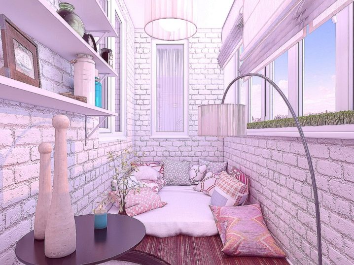 На достатъчно голяма площ от балкона или лоджията перфектно ще се впише матрак с възглавници в стила на ориенталските дворци. Визията ще бъде допълнена от подови цветя и декоративни лампи..