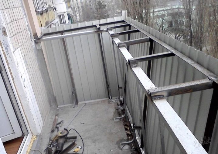 - Външната облицовка на балкона се монтира. Най -често това е професионален лист, чийто цвят избирате сами.