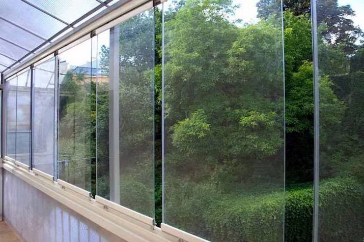 Възможно е остъкляване на балкон по този начин с помощта на здрави дървени рамки или алуминиеви профили. Отварящите се врати от различни видове могат да го допълнят. Традиционните опции са люлки или люлки. По -модерно – плъзгащо се.