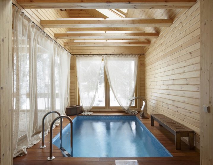 Терасата може да бъде не само във вила, баня или сауна също може да бъде оборудвана с това функционално разширение. Малък басейн, шезлонги, маса със столове и т.н. са напълно подходящи там..