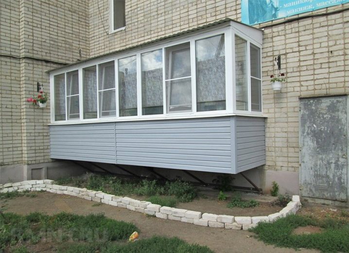 - облегнат на стелажите. Това е по -популярна технология, свързана с надеждността на получените структури. Предполага се, че балконът се опира на своеобразни колони (стелажи), изработени от дървен материал или трупи.