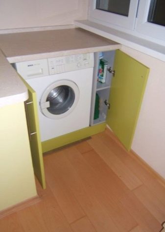 - Ако вашият балкон има достъп до кухнята, можете да инсталирате мек ъгъл за семейна трапеза върху него, да пуснете маркучи за инсталиране на пералня или да подредите минибар..