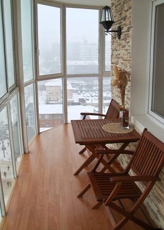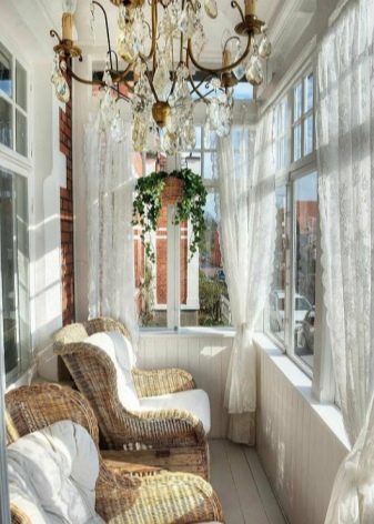 - Вътре. Работата започва с изолация на помещението със специални материали и остъкляване. Трябва да се обърне голямо внимание на хидроизолацията. Често те са остъклени с PVC рамки. Този материал се поддържа от неговата устойчивост на различни външни влияния, стегнатост на всички фуги, устойчивост на замръзване, лесна поддръжка и визуална привлекателност. Експертите препоръчват да изберете двоен стъклопакет или енергийно ефективен стъклопакет.