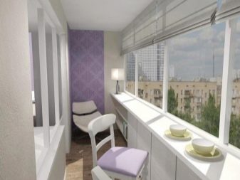Отличен дизайнерски проект може да бъде организирането на ъгъл за четене или занаятчийство на балкона. Това ще изисква рафтове за книги, удобен стол или табуретка и добро осветление. Много популярни са проектите за създаване на трапезария на балкона. Ако гледката от прозореца се отваря към панорама на гора, река или град, тогава със сигурност трябва да се възползвате от тази възможност..