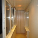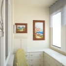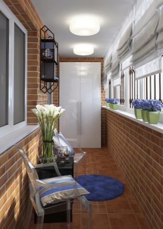 На такава територия на балкона доста успешно може да се постави вграден гардероб от тавана до пода. Във всеки случай си струва да се даде предпочитание на леки модели, които няма да скрият визуално и без това тясно пространство. Огледалните повърхности на мебелите ще ви помогнат да направите мебелите по -ефирни и леки..