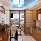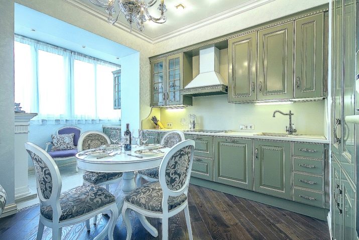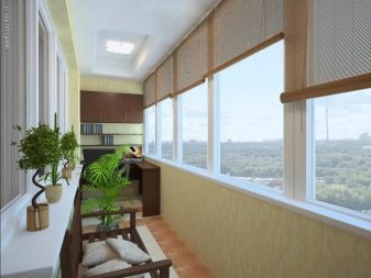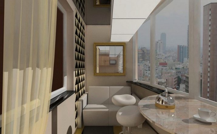 За стая, комбинирана с балкон, тази техника ще ви позволи да използвате допълнително пространство. Ако кухнята и балконът са комбинирани, тогава можете напълно да отделите зоните за готвене и хранене и да създадете малка трапезария с красива гледка.