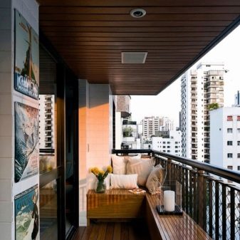 Ако собственикът не планира да комбинира балкона със стаята или кухнята, тогава можете да изберете довършителния материал независимо от дизайна в стаята. За балкон, свързан с кухнята или залата, си струва да изберете материали, подобни по декорация на стаята. По правило стените на балкона са облицовани с дъски, изработени от дървени ламели. Този материал придава на стаята допълнителен комфорт и топлина. Гипсокартонът е идеален за интересни дизайнерски решения на собствениците. С негова помощ ще бъде възможно не само бързото подравняване на стените, но и създаването на многостепенни структури..