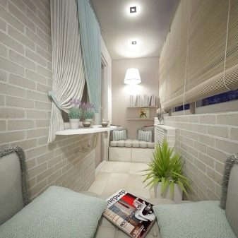 Отличен дизайнерски проект може да бъде организирането на ъгъл за четене или занаятчийство на балкона. Това ще изисква рафтове за книги, удобен стол или табуретка и добро осветление. Много популярни са проектите за създаване на трапезария на балкона. Ако гледката от прозореца се отваря към панорама на гора, река или град, тогава със сигурност трябва да се възползвате от тази възможност..