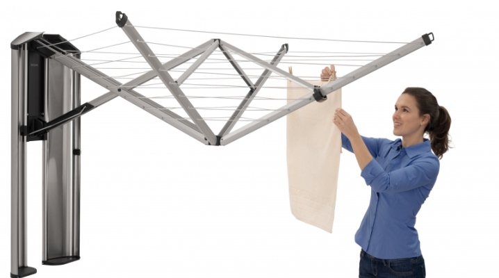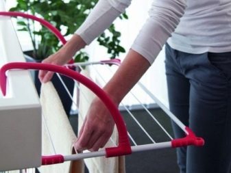 Има и по -оригинални опции, например ролкова сушилня. Той се различава от стандартния модел по това, че отстрани има ролки, върху които се дърпа въжето, и с тяхна помощ можете да преместите продукта в различни посоки. По този начин мобилният продукт може лесно да се премества и взема със себе си..