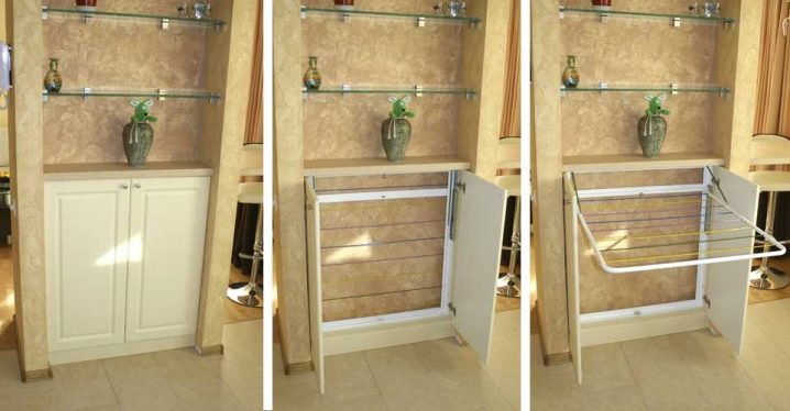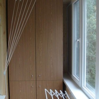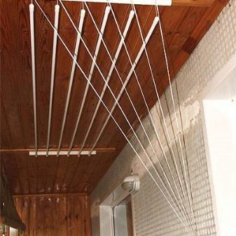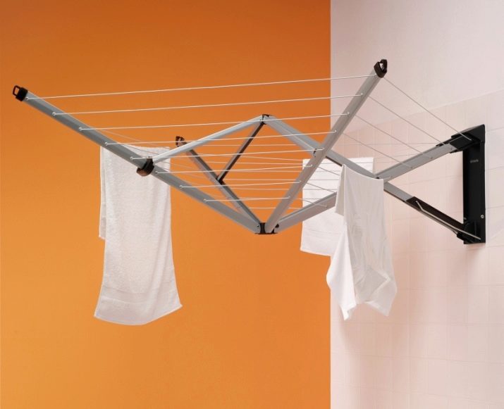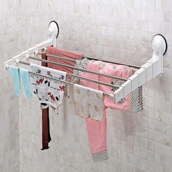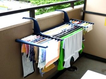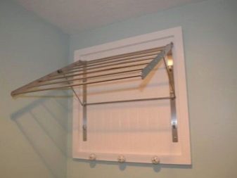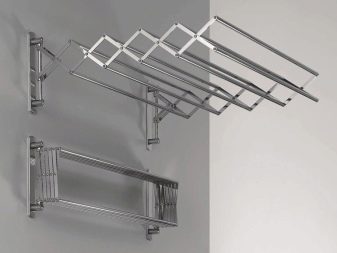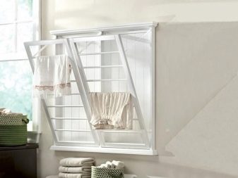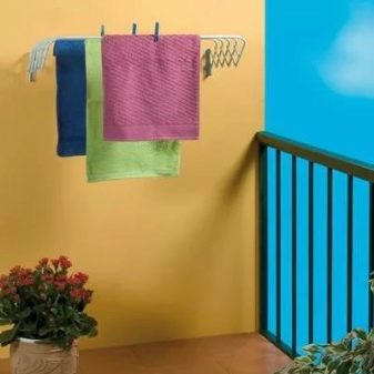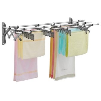 - Опции, които могат да бъдат прикрепени към стената на просторна лоджия. Такива продукти могат да имат голямо разнообразие от дизайни. Тя може да бъде компактна и миниатюрна сушилня като релси за кърпи. Има и многостепенен модел, който издържа двадесет килограма пране..