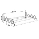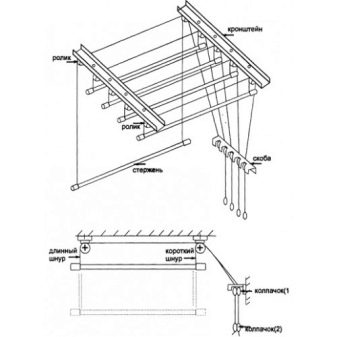 Има специални модели с допълнителни рафтове за бельо с тегло до 20 кг. Обичайните стандартни опции държат половината време. Недостатъкът може да бъде, че с течение на времето, под тежестта на бельото, въжетата могат да провиснат и трябва да се сменят. Много домакини предпочитат този конкретен вариант, тъй като сушилните за стена са доста практични, функционални и лесни за използване..