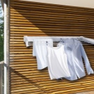 - Инерционни сушилни за стени на достъпна цена. Тези модели имат предимно компактно тяло, което е прикрепено към стената. Вътре в него има специален пружинен барабан с линии за дрехи. Тази прибираща се конструкция е предназначена главно за шест килограма тегло. Въжените куки са разположени от противоположната страна. Този модел ще бъде удобен за малки балкони. Разбира се, струва си да си припомним, че с времето въжетата ще провиснат..