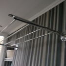 Необходимо е да се закупят две греди, материалът, за който могат да служат както дърво, така и желязо. След това трябва да пробиете отвор с малък диаметър по цялата дължина. Поставете релсите около краищата на балкона си и ги закрепете с винтове, като предварително дърпате бельото за дрехи. Можете предварително да боядисате цялата структура в желания от вас цвят. Използвайки пластмасова основа, можете да използвате водопроводни тръби от PVC.
