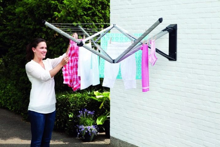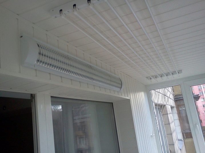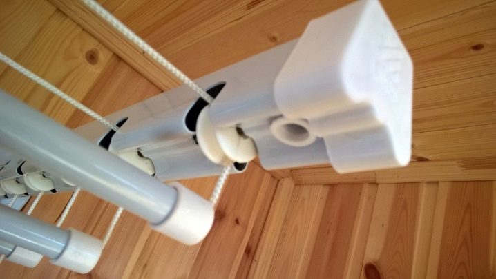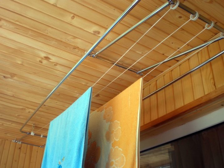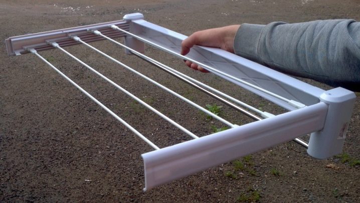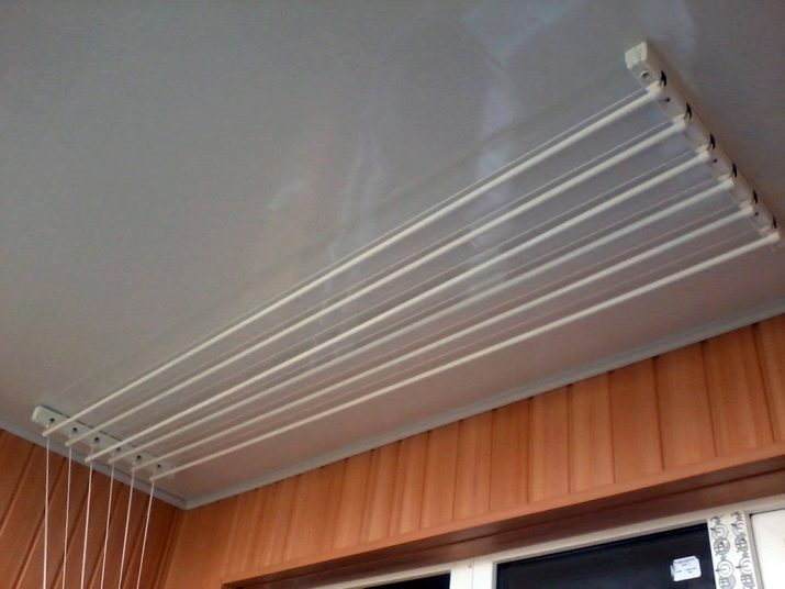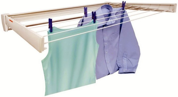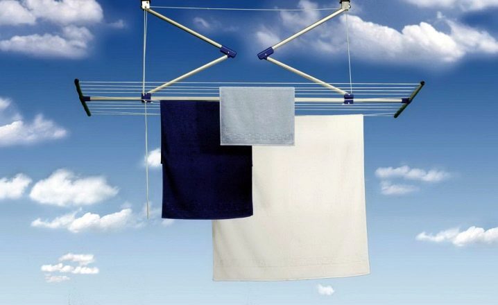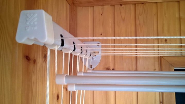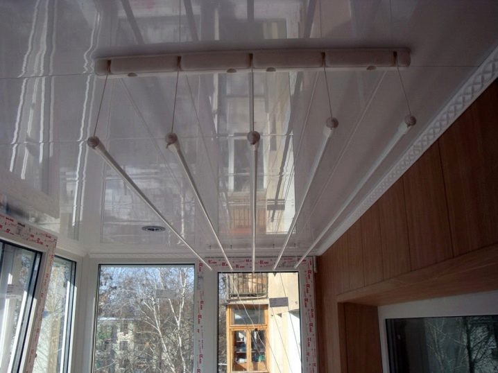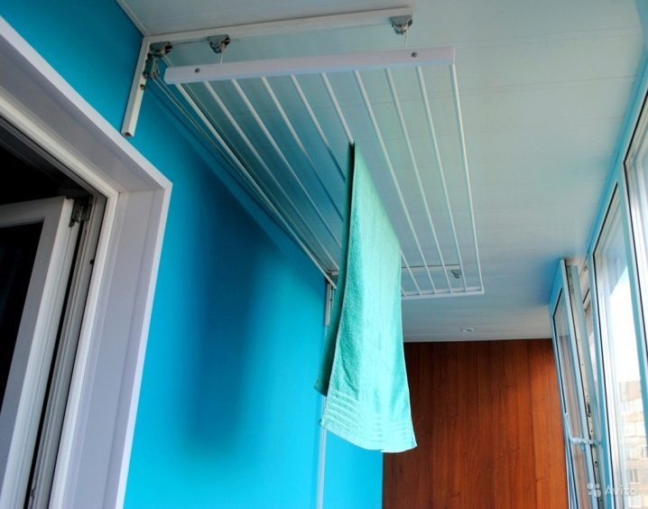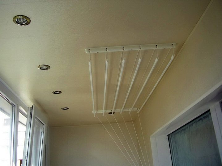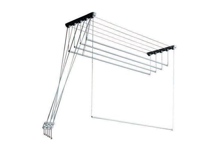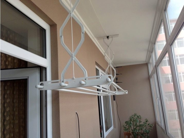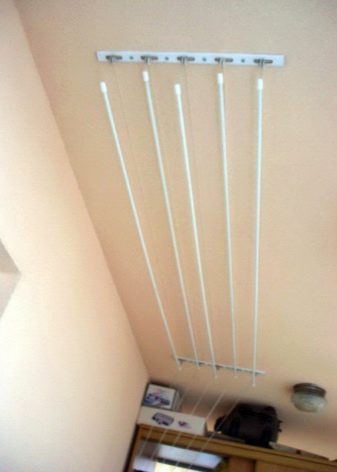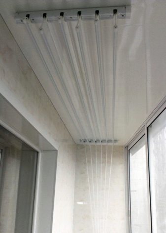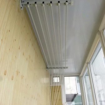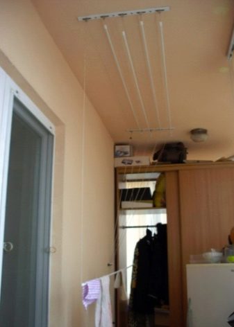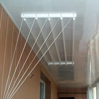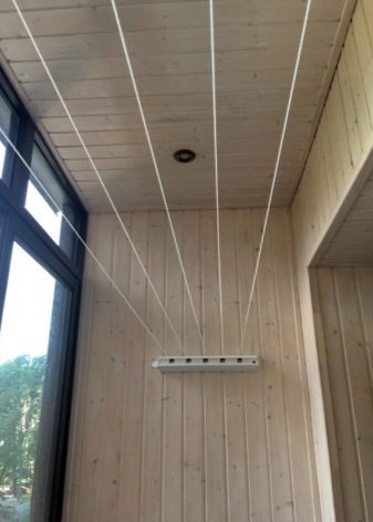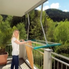 В допълнение, този тип сушилня, като плъзгаща се, която е прикрепена към тавана на балкона и се състои от два отделни блока, в единия от които е скрито навито въже – това е опция, която ще подхожда както на практикуващите, така и на любители на красивия декор. Този дизайн осигурява възможност да дърпате колкото се може повече въжета – поне едно, поне шест наведнъж..