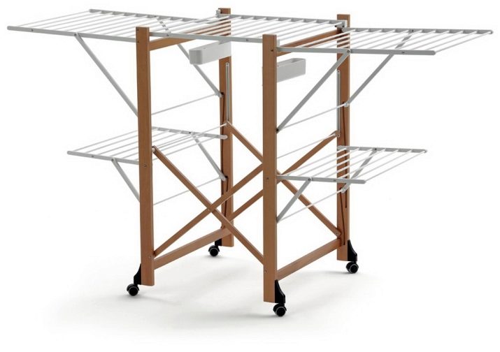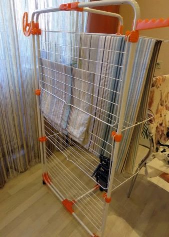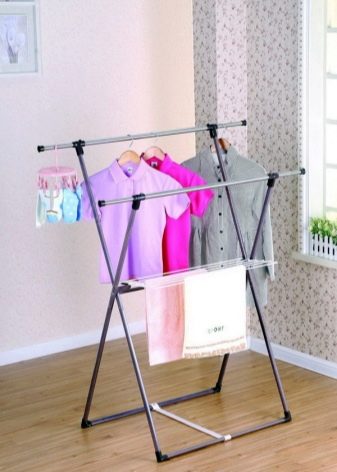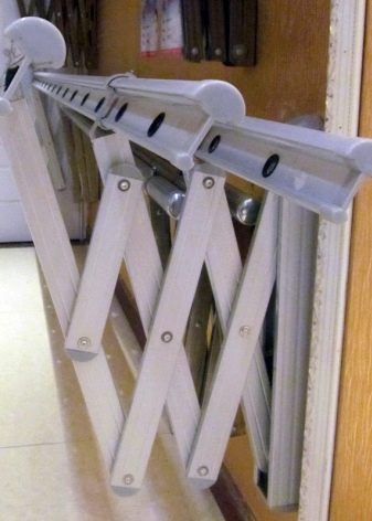 - Сгъваем. Този дизайн за сушене на дрехи се състои от ленти, подсилени със скоби. Освен това такива ленти могат да се сгъват не само по дължина, но и по ширина – това зависи от избрания модел..