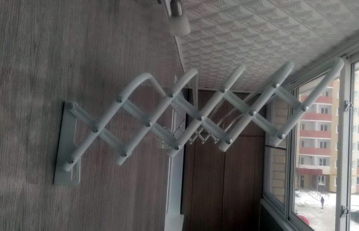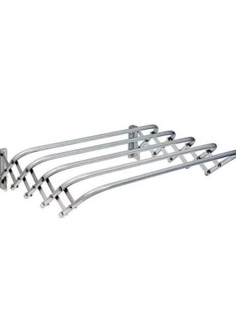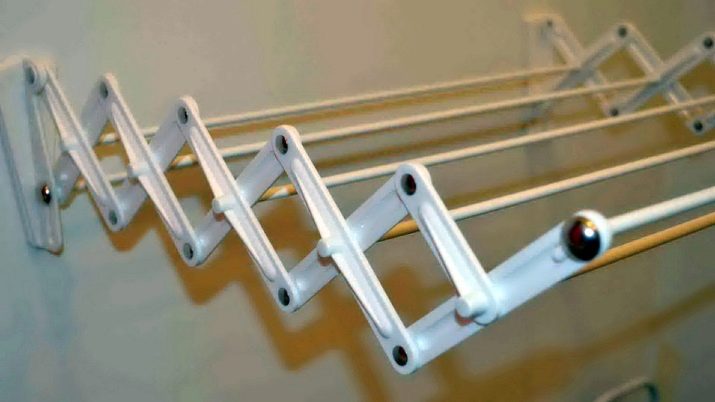 Ако дължината на балкона е малка и обикновено няма толкова много неща за сушене, тогава сгъваемият стенен модел (акордеон) ще бъде най -подходящ. Изработен е в красив дизайн и може да се превърне в украса на класически интериор, но не бива да го претоварвате – може да стане неизползваем.