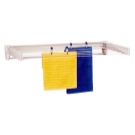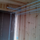 Релсата може лесно да се спусне до желаната височина, да се напълни с мокро бельо и отново, като се дърпа въжето, може лесно да се изпрати и фиксира на желаната височина.